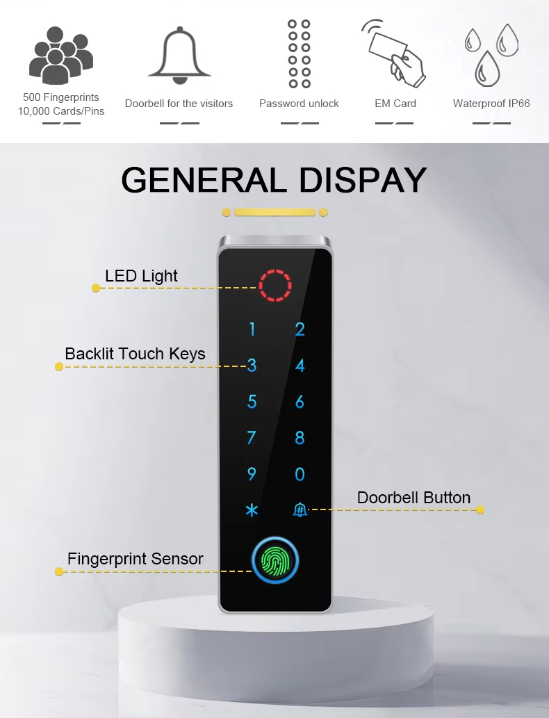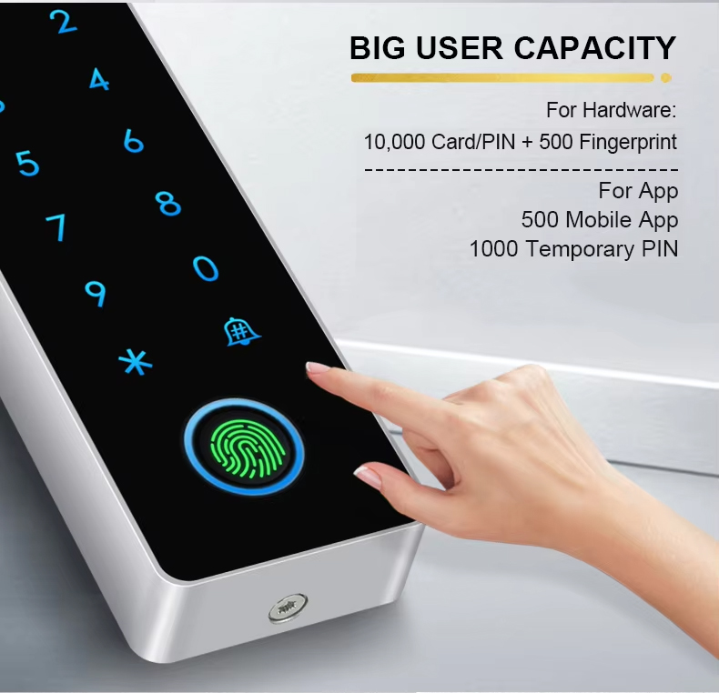 10000 カード/コード、500 人の指紋ユーザー |