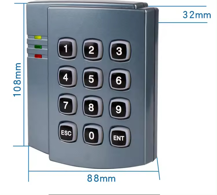 13.56kHz 근접 RFID 카드 리더 와이어 랜드 26 블랙 컬러 IP65 방수 도어 액세스 제어 키패드 리더
