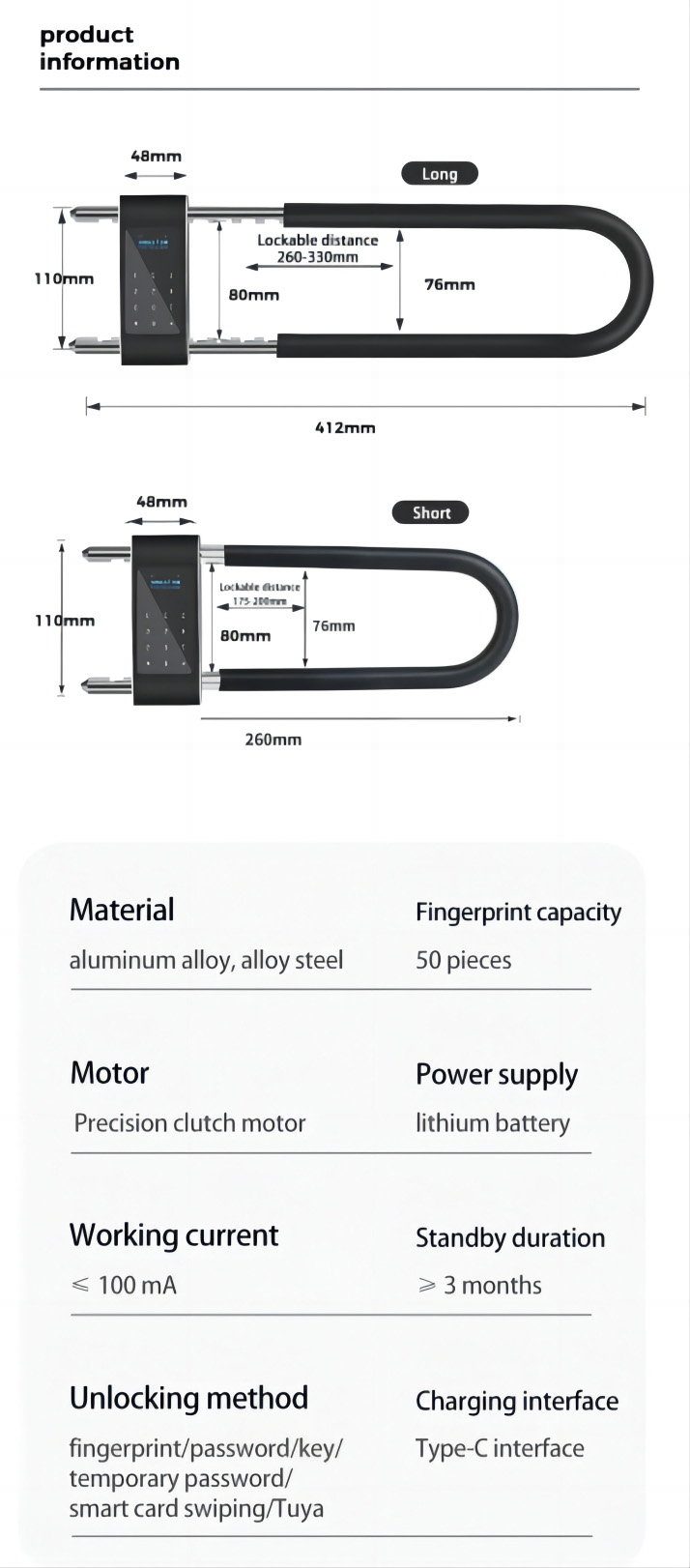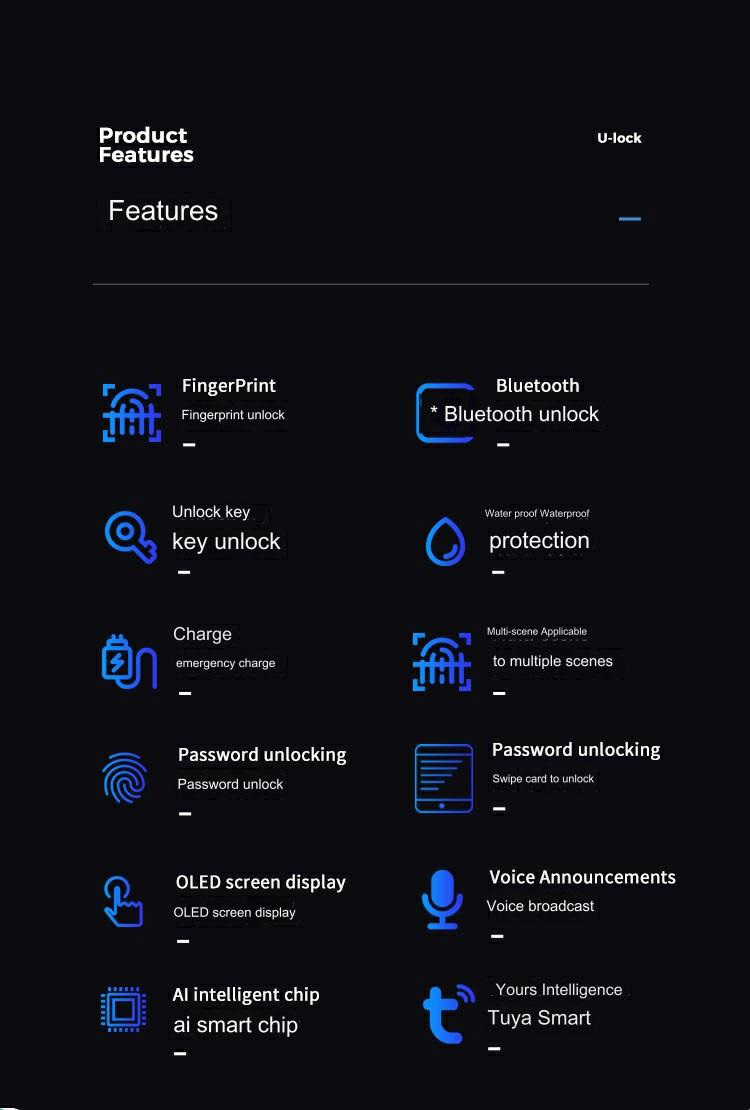 - 잠금 해제 방법 : 지문/비밀번호/키/임시 비밀번호/카드 스 와이핑/Tuya