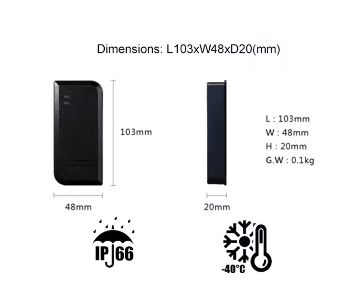 방수 IP66 독립형 경제적 인 독자 안티 탬퍼 RFID 액세스 제어를위한 LDR에서 내장 내장 쉽게 설치